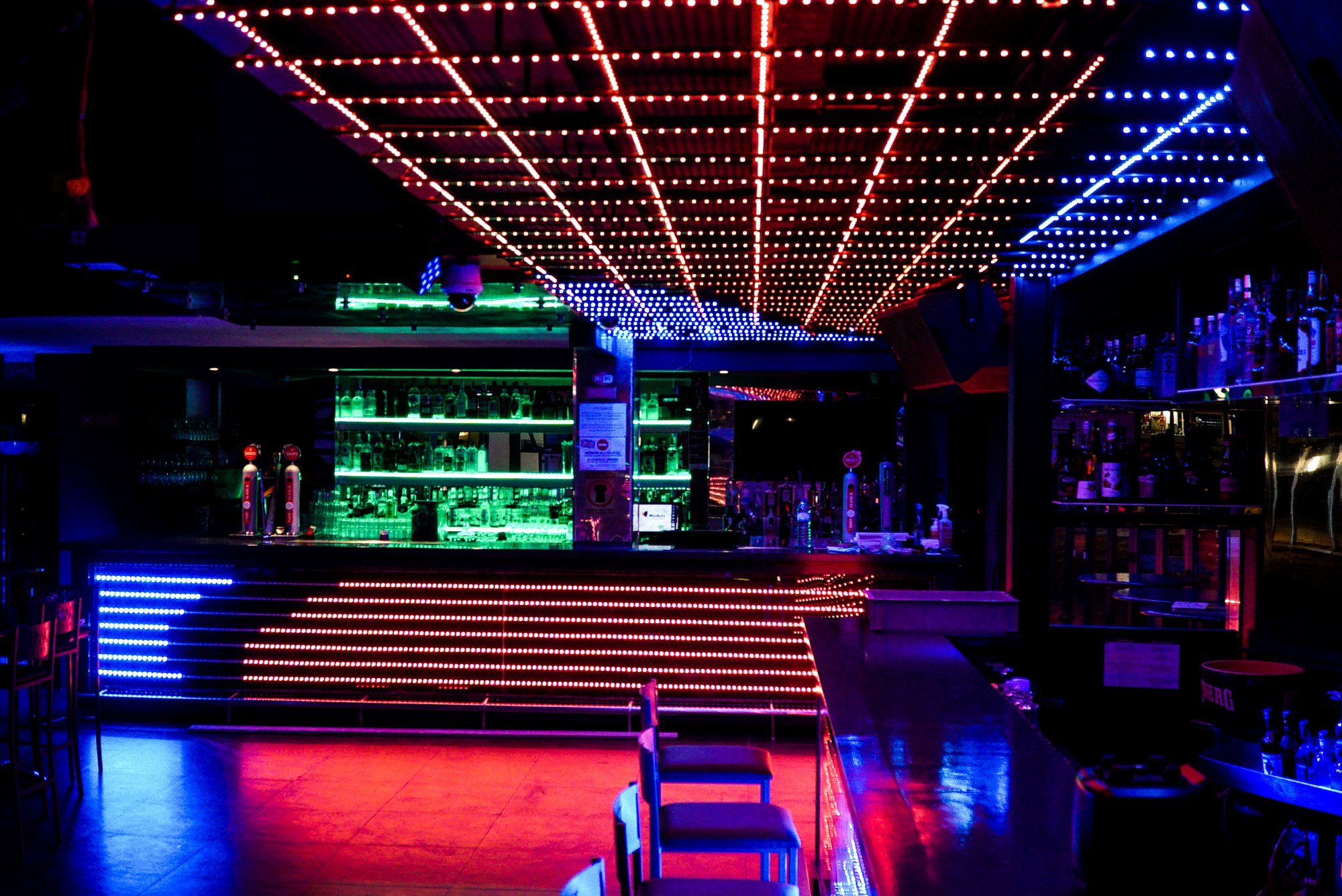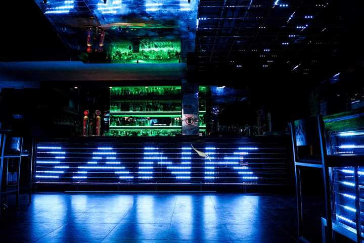 Para este espaço localizado no centro de Albufeira, foi pensada e realizada toda uma iluminação de forma a dar um efeito tridimensional ao longo do teto deste espaço, transportando todos os clientes que entrem neste bar, para um mundo alucinante e visualmente estimulante.