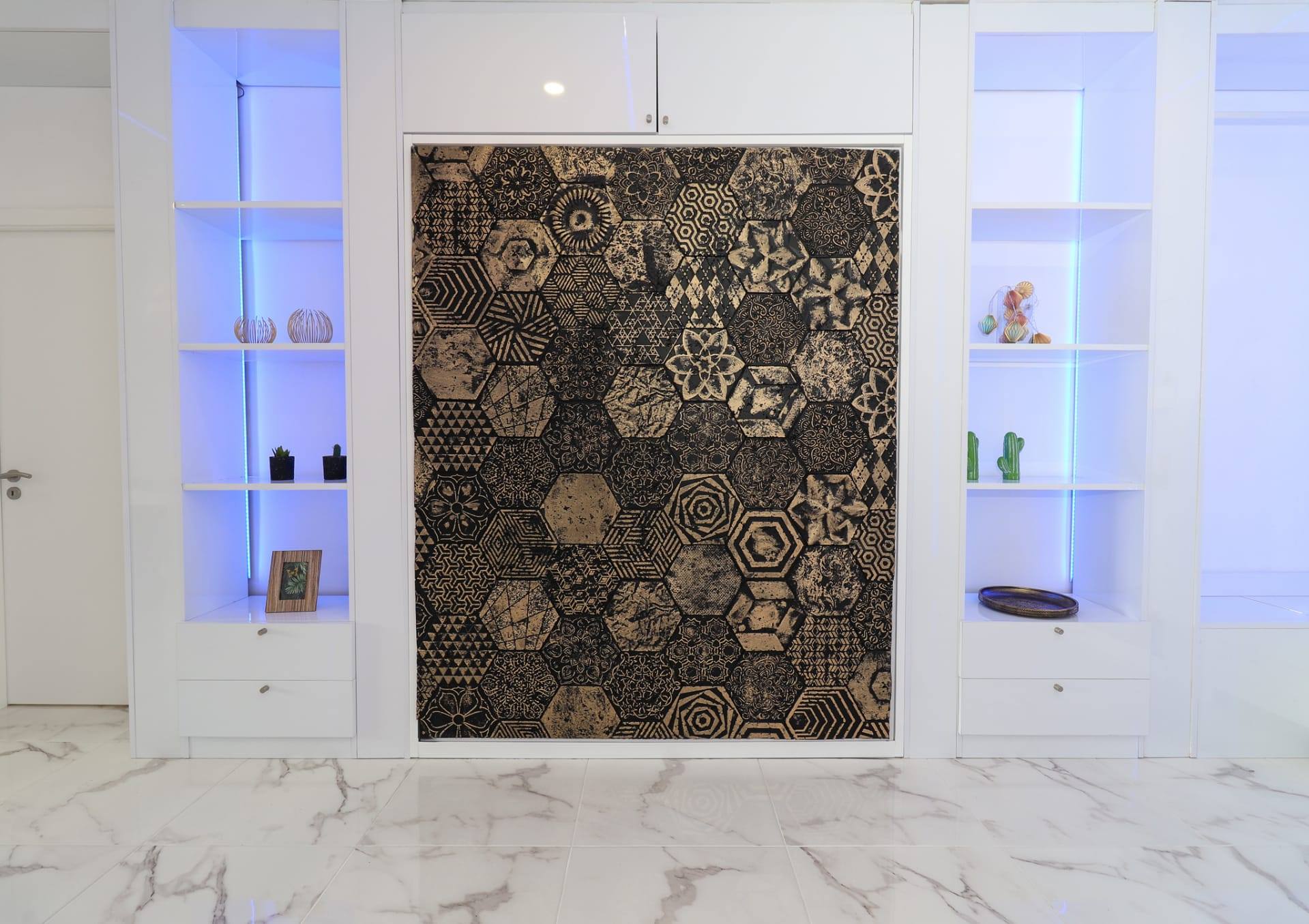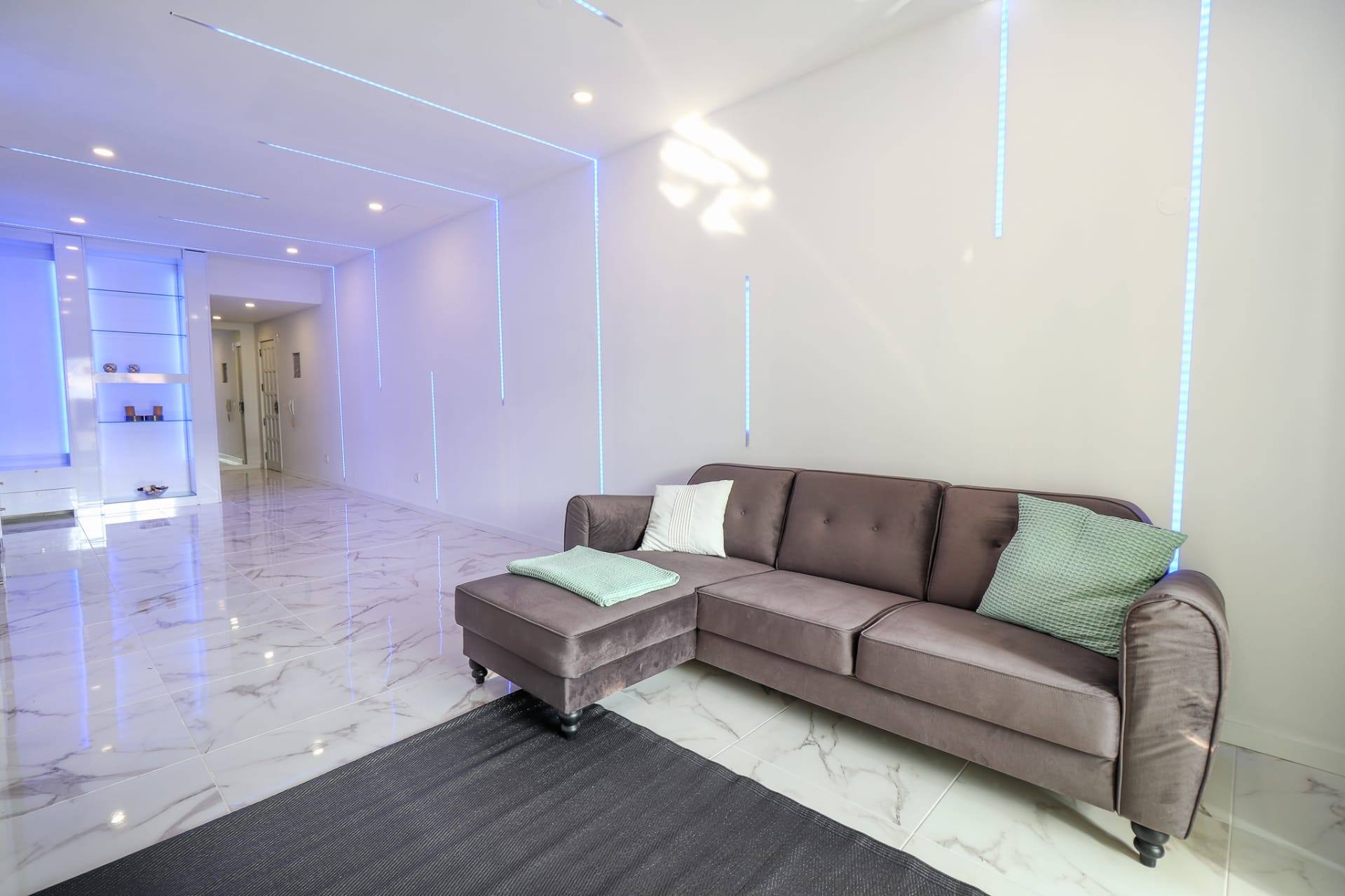 A nossa equipa mais uma vez se mostrou à altura dos mais variados desafios, elaborando um esquema luminoso com recurso a tiras de led em tons frescos e sóbrios, exaltando ainda mais o requinte e leveza deste espaço.